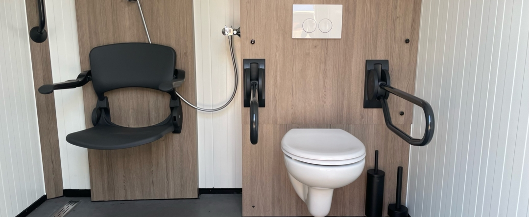 Deze outdoor badkamer hebben we op voor ons kenmerkende manier ontwikkeld. Uitgetekend in samenwerking met een gespecialiseerde architect, ingepast in ons modulaire concept en in de praktijk getest met rolstoelgebruikers. Deze badkamer unit, de Roomplus Royal MIVA hebben we inmiddels al diverse malen in opdracht mogen nemen en we merken dat parken naast het verbreden van hun gastvrijheid met de aanschaf van deze voorzieningen vaak ook hun classificatie verhogen.