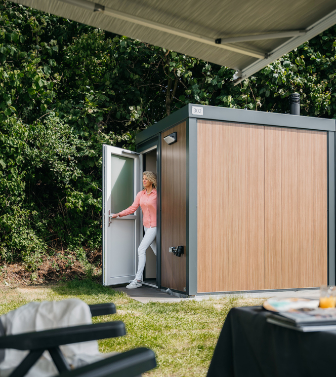 Met een betonnen vloer, geïsoleerde stalen wanden, mechanische ventilatie én elektrische verwarming bied je in elk seizoen comfort, terwijl je geen omkijken hebt naar het onderhoud en profiteert van een lange levensduur. Inloggen met een app, een koppeling met jouw boekingssysteem? Kan allemaal. Helemaal van nu en ultiem gemakkelijk om te beheren.
